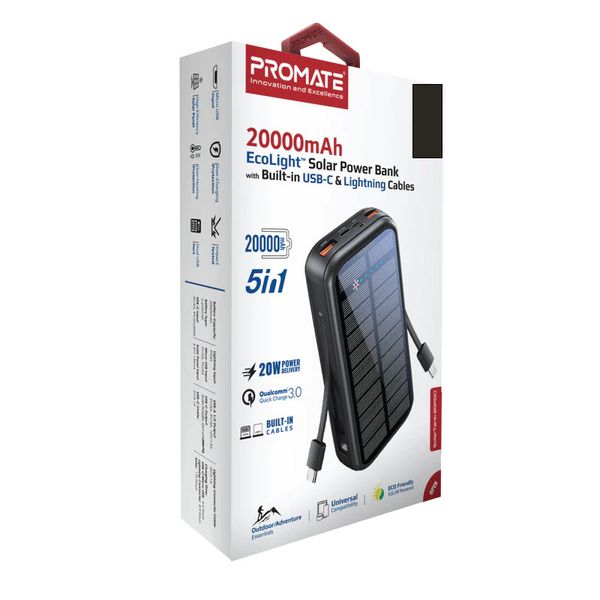 پاوربانک پرومیت با ظرفیت 20,000 میلیآمپر ساعت، یک راهحل جامع و مقاوم برای تأمین انرژی در شرایط مختلف است. این پاوربانک علاوه بر شارژ سریع، مجهز به یک پنل خورشیدی است که آن را به گزینهای ایدهآل برای سفر، کمپینگ و استفاده در فضای باز تبدیل میکند. بدنه ضدآب و مستحکم آن، تضمینکننده مقاومت در برابر شرایط سخت است و آن را به یک همراه قابل اعتماد در هر ماجراجویی تبدیل کرده است.